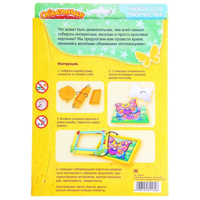 3D картина - объемная аппликация "Волшебные бабочки" - это отличный подарок и развлечение в дорогу!