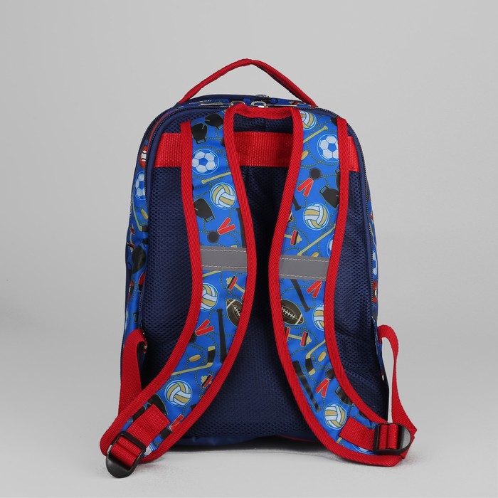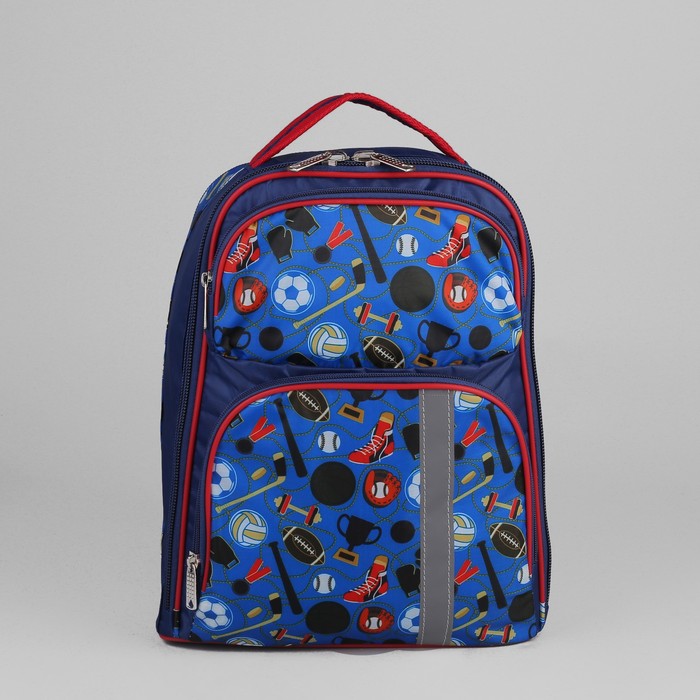 4805-420/Д Рюкзак школ Bagamas, 30*20*37, 2 отд на молниях, 2 н/кармана, синий/кеды