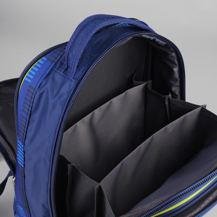4805-420/Д Рюкзак школ Bagamas, 30*20*37, 2 отд на молниях, 2 н/кармана, синий/клетка