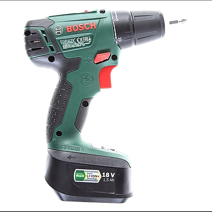 Используйте дрель-шуруповёрт Bosch PSR 1800 LI-2, чтобы монтировать и демонтировать крепёж, сверлить металл, древесину и пластик.