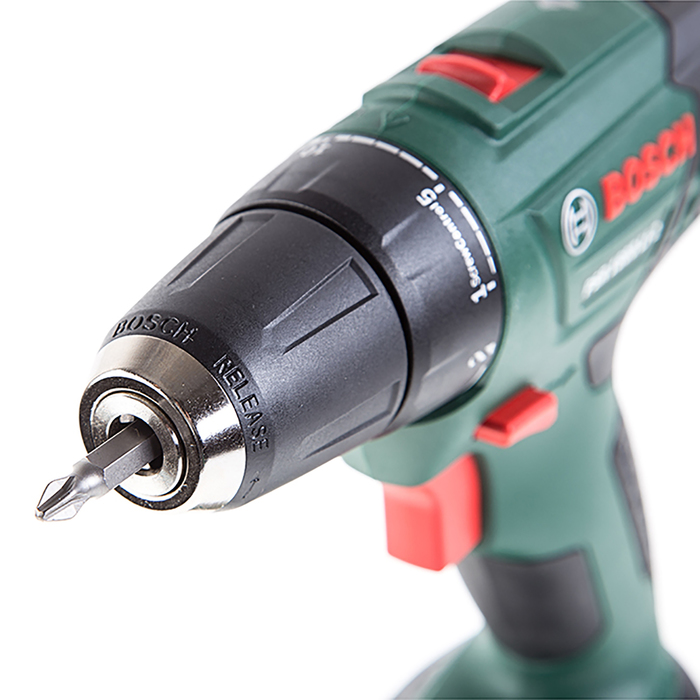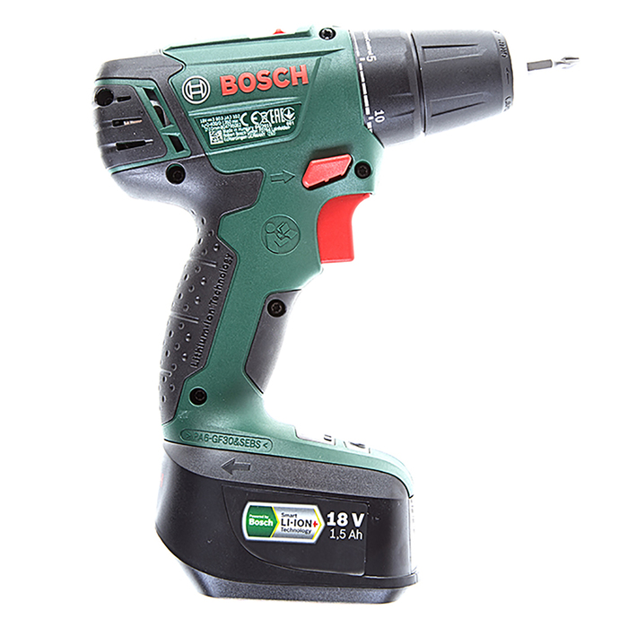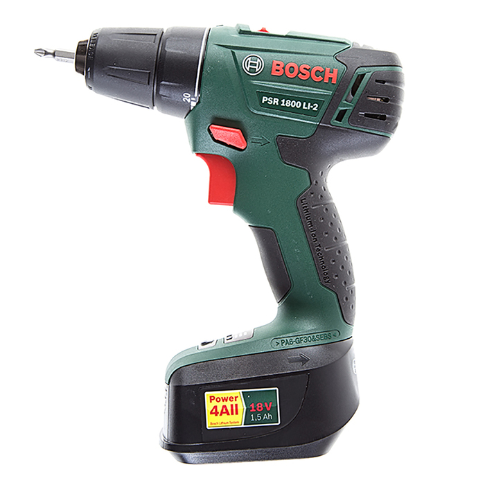 Используйте дрель-шуруповёрт Bosch PSR 1800 LI-2, чтобы монтировать и демонтировать крепёж, сверлить металл, древесину и пластик.