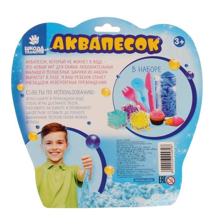 Может быть, именно такой необычный товар, как Аквапесок "Северный полюс", набор: песок 100 г, игрушки, гидрогель 15 г, лопатки, раскроет неожиданные способности у вашего ребёнка. И даже если он не станет новым Рафаэлем, то ему, определённо, обеспечена богатая фантазия, креативное мышление и золотые руки.