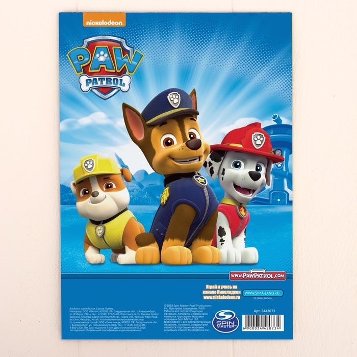 Альбом с наклейками А5 PAW PATROL "Щенячий патруль", 4 страницы + бонус