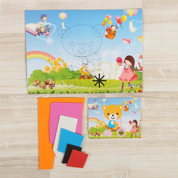 Аппликация 3D "Мишка на велосипеде" из EVA