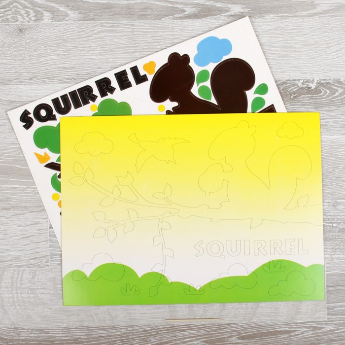 Аппликация бумагой "Белочка и орех" лист основы и лист элементов для наклеивания