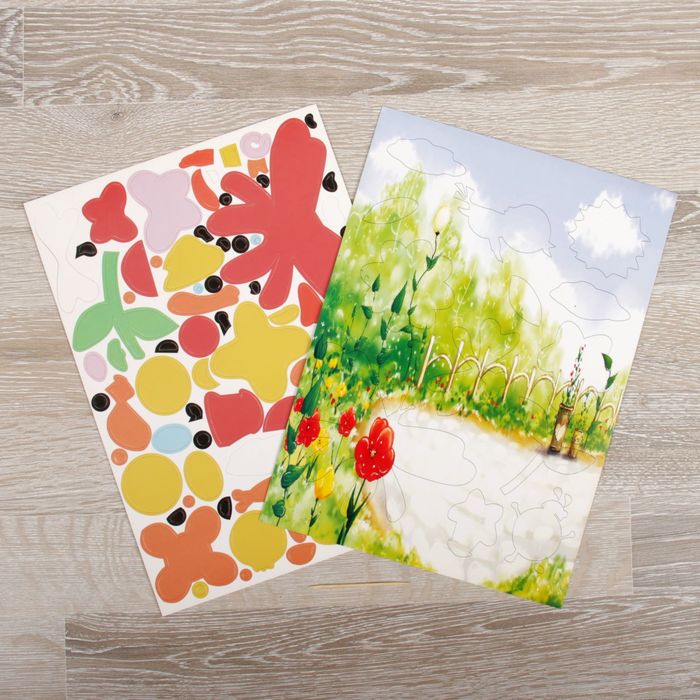 Аппликация бумагой "Друзья на полянке" лист основы и лист элементов для наклеивания