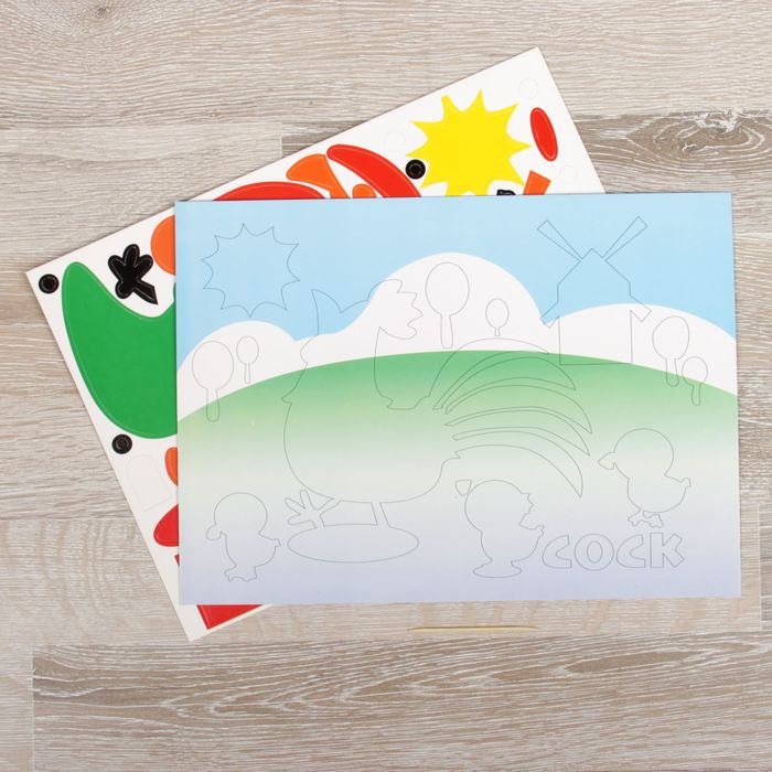 Аппликация бумагой "Петушок" лист основы и лист элементов для наклеивания