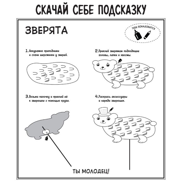 Аппликация бумагой "Звери" для самых маленьких + липкая лента