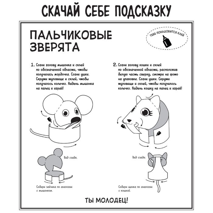 Этот замечательный набор поможет ребёнку создать бумажных животных, используя только клей, и подарит незабываемые эмоции.