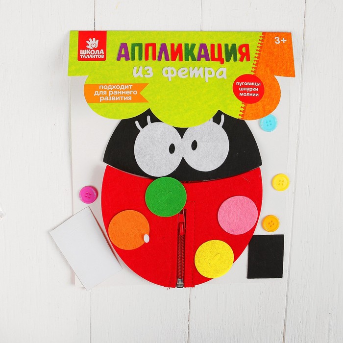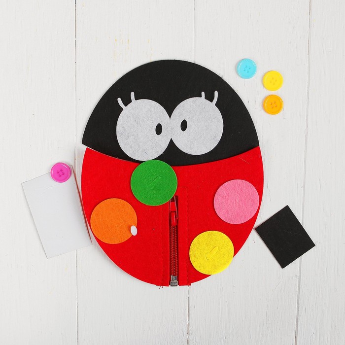 Аппликация из фетра на клеевой основе "Божья коровка" + пуговицы, молния