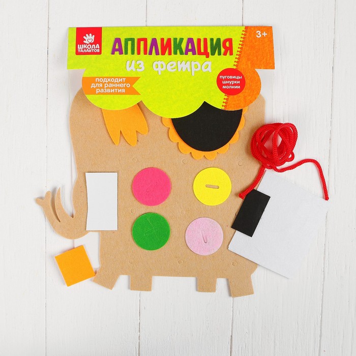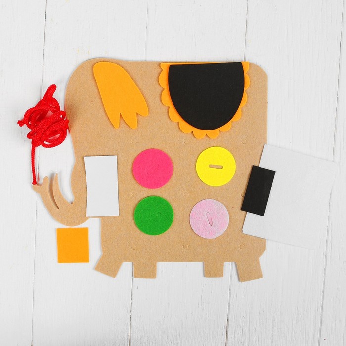 Аппликация из фетра на клеевой основе "Слон" + пуговицы, шнурок