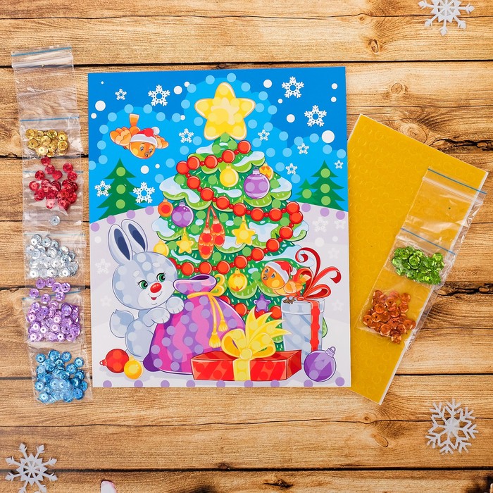 Аппликация из пайеток "Новогодний рисунок. Ёлочка"