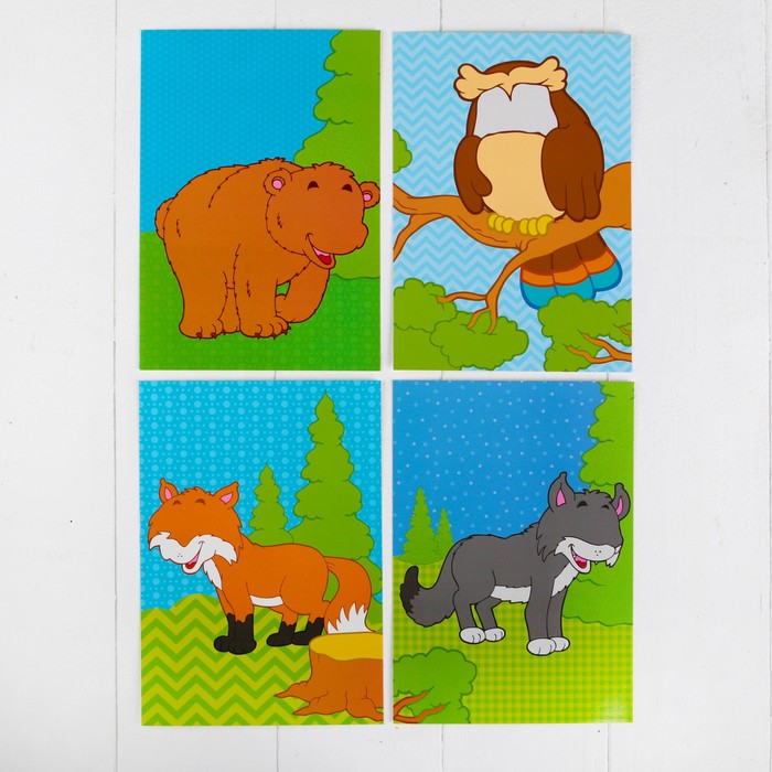 Аппликация клейкой лентой "Лесные животные" 4 картинки + наклейки + цветная клейкая лента