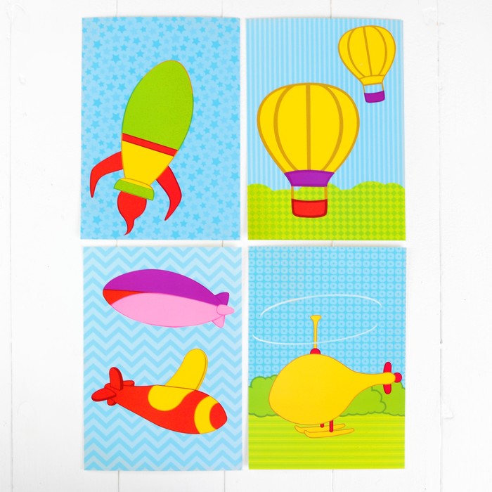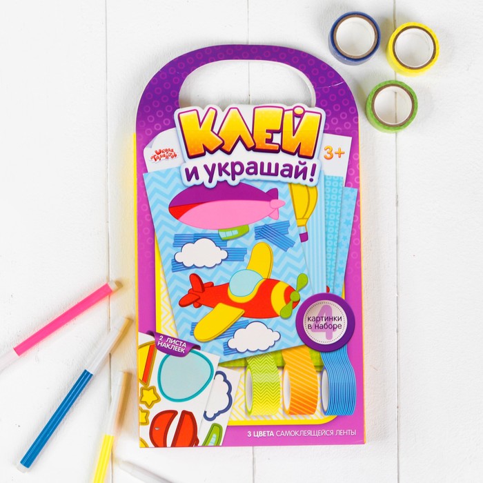 Аппликация клейкой лентой "Воздушное путешествие" 4 картинки + наклейки + цветная клейкая лента
