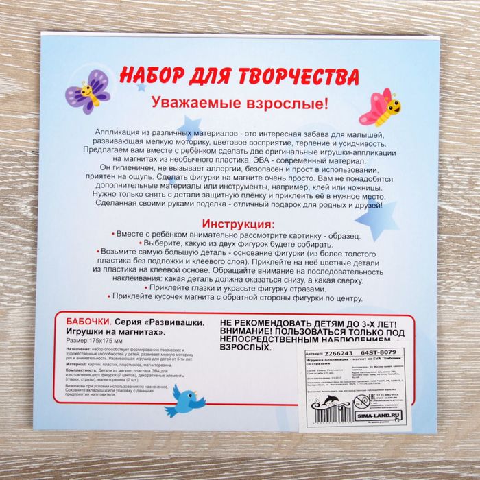 Помогите малышу собрать необычные магниты: поочерёдно приклеивайте фигурные элементы друг к другу. Детали выполнены из мягкого материала EVA, который и создаёт 3D-эффект.