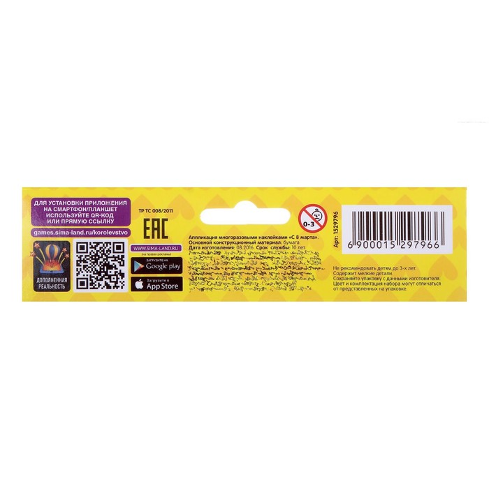 Аппликация многоразовыми наклейками "С 8 Марта", набор: 2 листа наклеек, 2 картинки