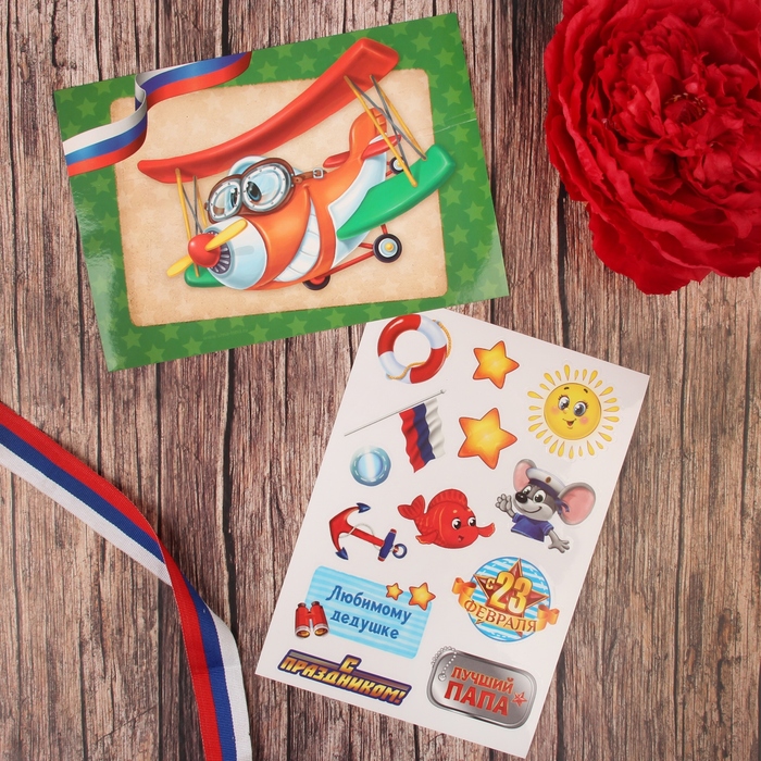 Аппликация многоразовыми наклейками "Вперёд!", самолёт, набор: 2 листа наклеек, 2 картинки