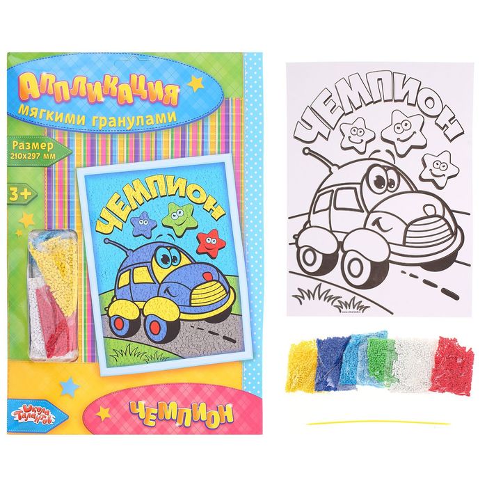 Аппликация мягкими гранулами «Машинка» 21 х 29,7 см — это увлекательный вид творчества, который понравится любому малышу. Клеевая основа защищена специальным слоем бумаги, на который нанесены прорезные контуры. Каждый цвет находится в своей зоне: отделяйте верхний слой с помощью стеки и засыпайте гранулами подходящего оттенка. Специальные контуры не дадут разноцветным частичкам перемешаться и помогут с лёгкостью создать фактурную картину. Засыпайте рисунок постепенно и не забывайте распределять мягкие гранулы по клеевому слою, чтобы добиться особой яркости изображения.
