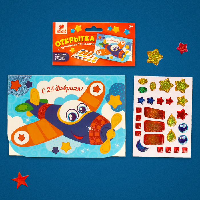 Может быть, именно такой необычный товар, как Аппликация на открытке гелевыми стразами "С 23 февраля!", Самолетик, раскроет неожиданные способности у вашего ребёнка. И даже если он не станет новым Рафаэлем, то ему, определённо, обеспечена богатая фантазия, креативное мышление и золотые руки.