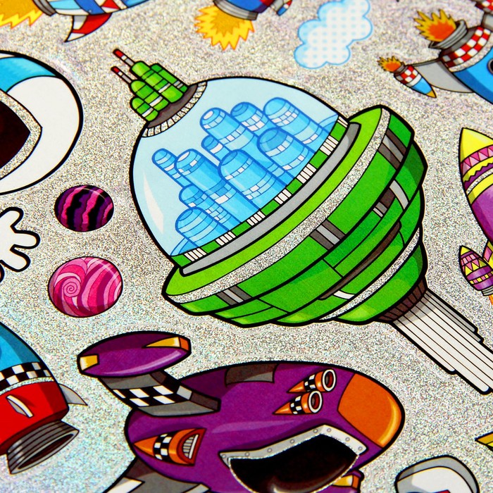 Аппликация наклейками "Космос" 2 листа основы, 2 листа наклеек