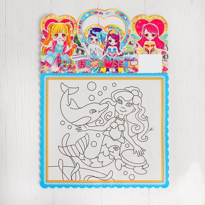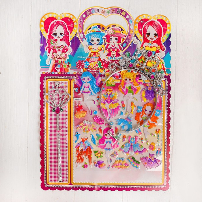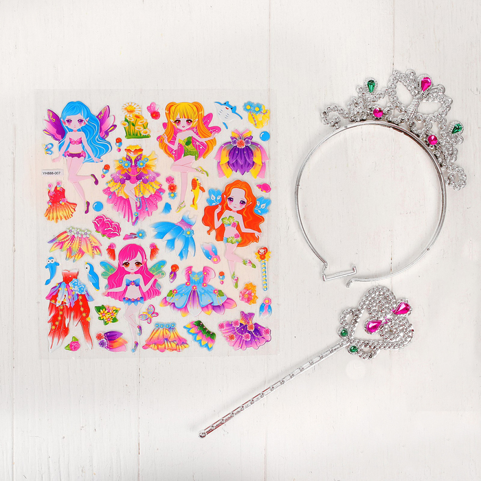 Аппликация наклейками "Создай наряд куколки Анжелы" + корона, волшебная палочка МИКС