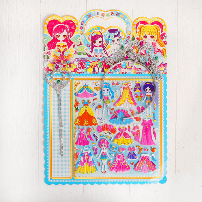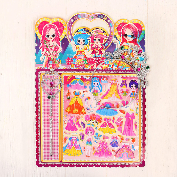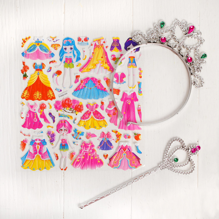 Аппликация наклейками "Создай наряд куколки Наташи" + корона, волшебная палочка МИКС