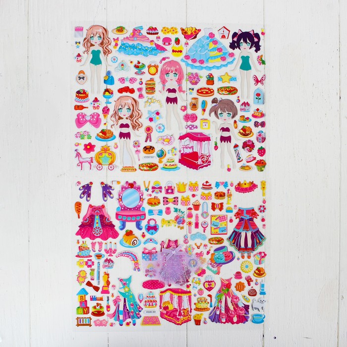 Аппликация наклейками "Создай наряд куколки Раи