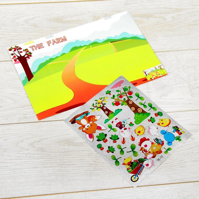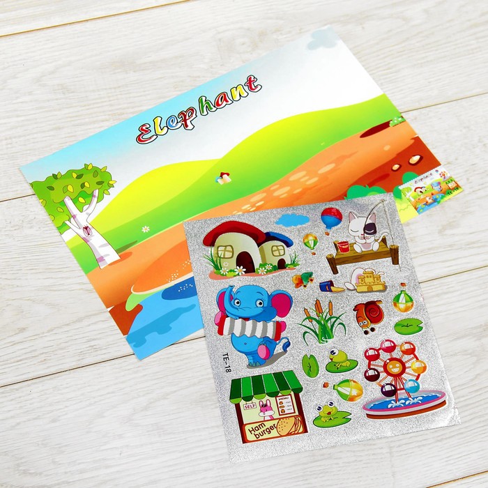 Аппликация наклейками "Веселые животные" 2 листа основы, 2 листа наклеек