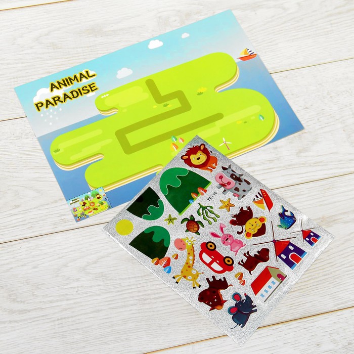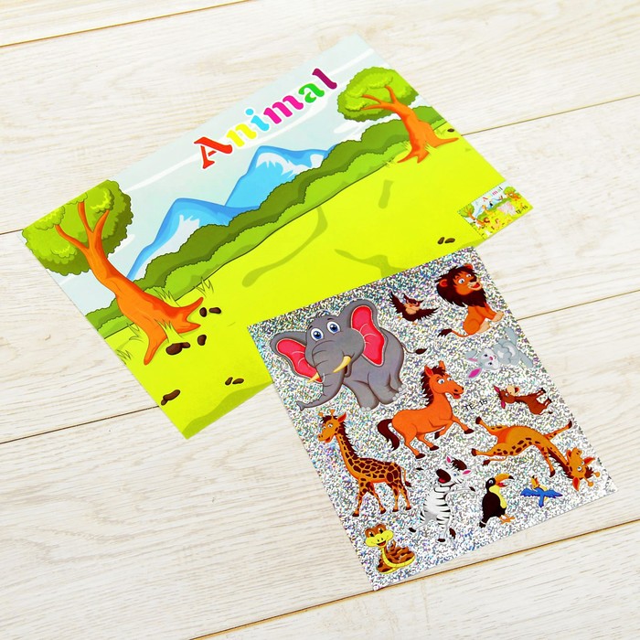Аппликация наклейками "Животные" 2 листа основы, 2 листа наклеек
