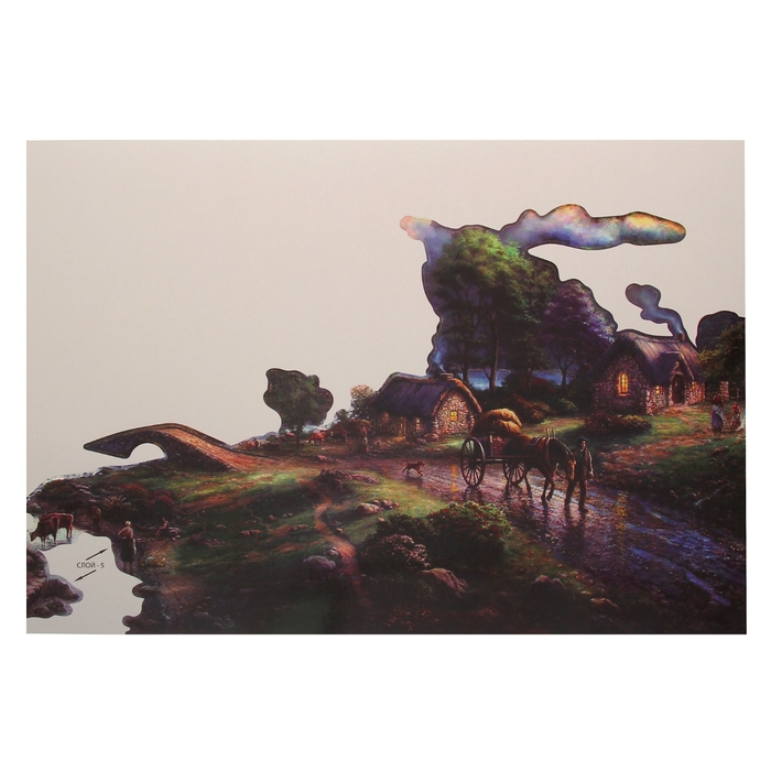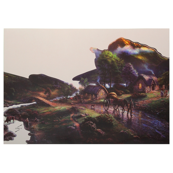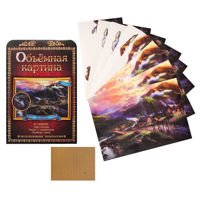 Аппликация объемная - 3D "Деревня в горах" А3 + двусторонняя клейкая лента