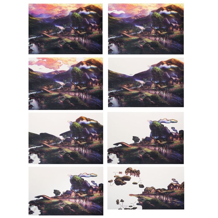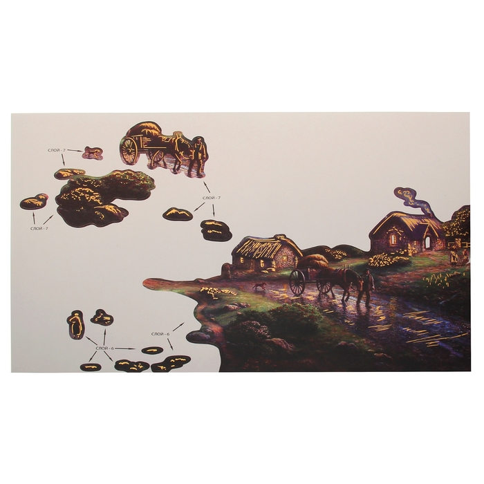 Каждая цифра, проставленная рядом с элементом, соответствует номеру слоя. Каждая прослойка наклеивается в одной плоскости, и картина получается такой объёмной и реалистичной.