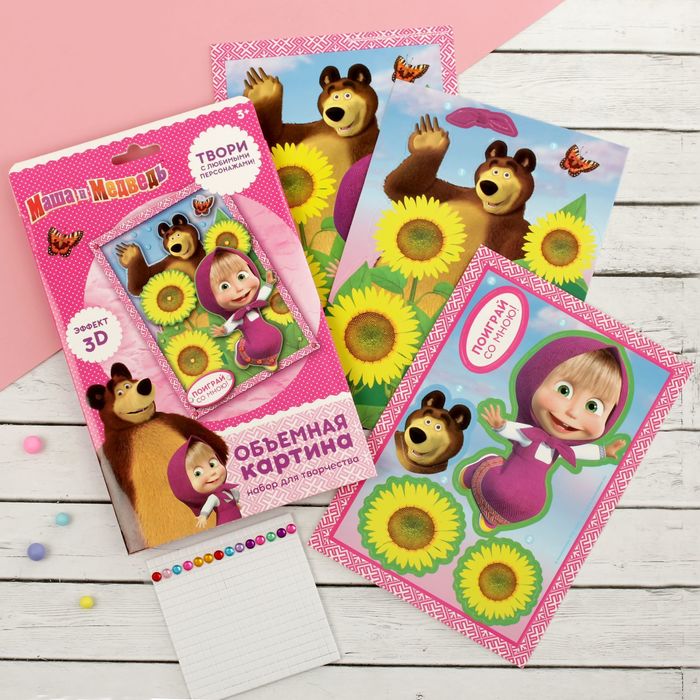 Теперь ребёнок почувствует себя настоящим художником-аниматором и сделает картину как в 3D мультфильмах с Машей и Медведем! Вы удивитесь, как увлечённо малыш будет собирать объёмную аппликацию с любимыми героями! Такое захватывающее занятие будет интересно и взрослым!