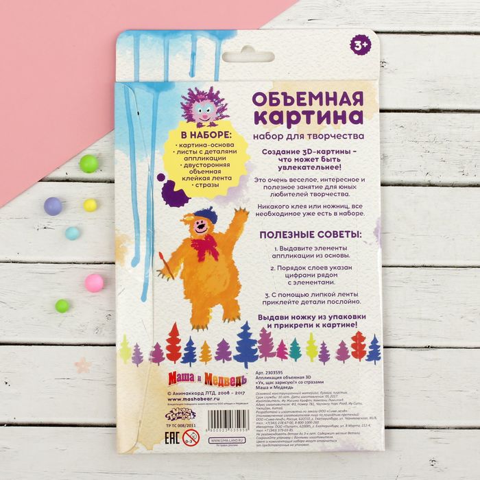 Теперь ребёнок почувствует себя настоящим художником-аниматором и сделает картину как в 3D мультфильмах с Машей и Медведем! Вы удивитесь, как увлечённо малыш будет собирать объёмную аппликацию с любимыми героями! Такое захватывающее занятие будет интересно и взрослым!