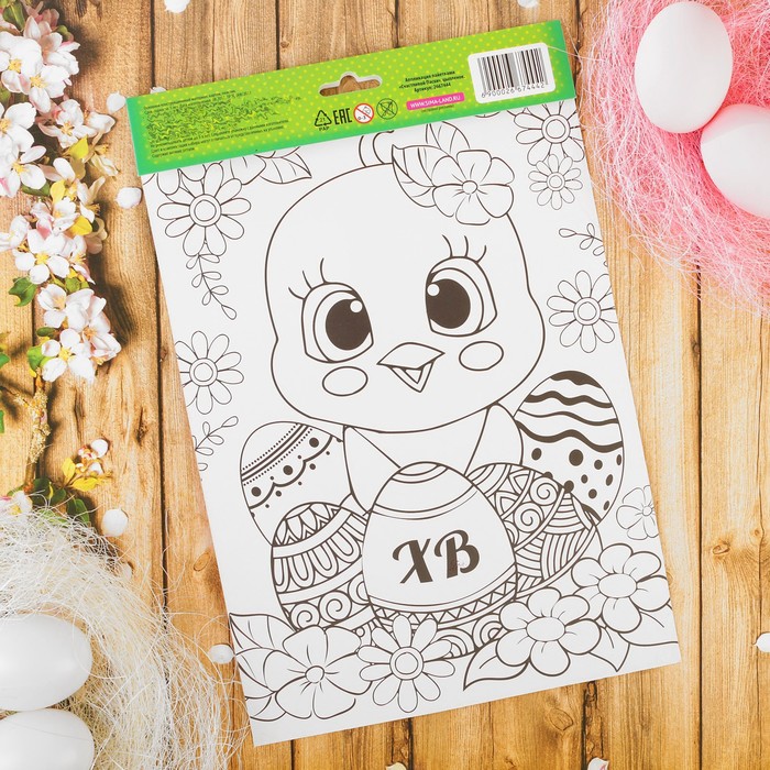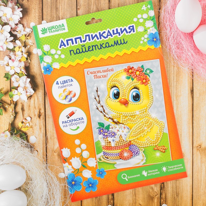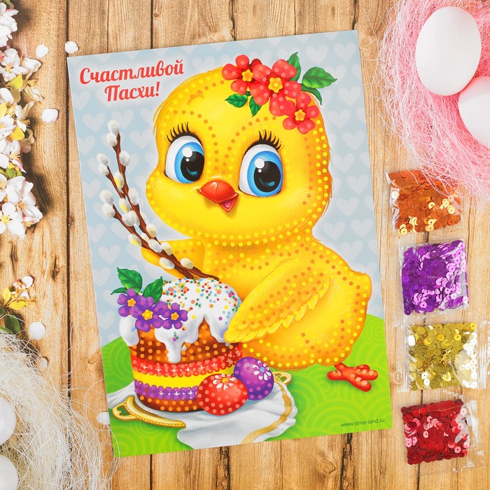 Аппликация пайетками "Счастливой Пасхи" Цыпленок + 4 цвета паейток по 7 грамм