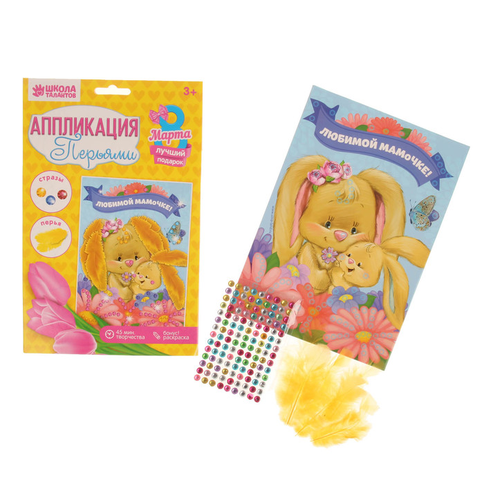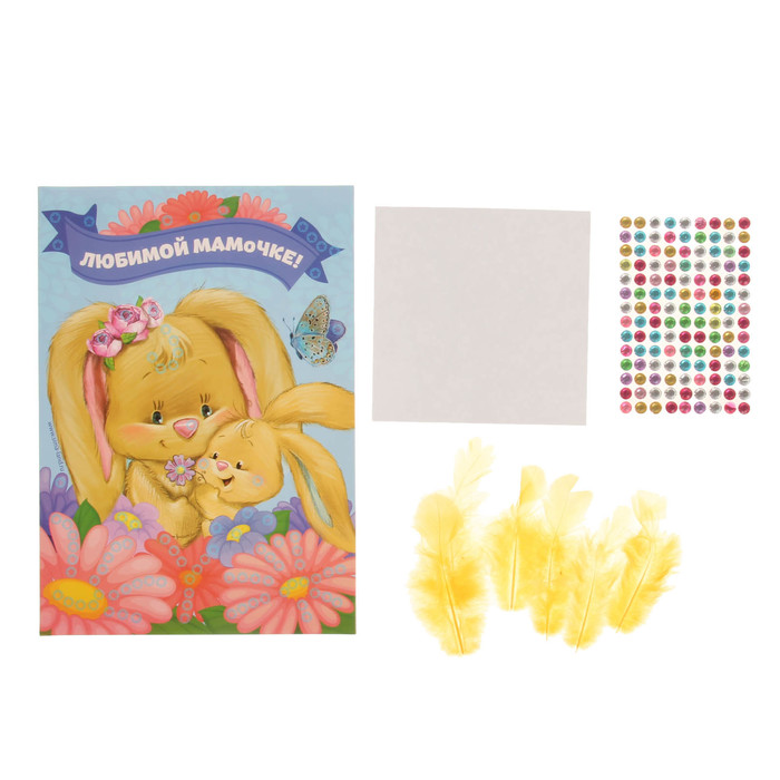 Аппликация перьями и стразами "Любимой мамочке!" Зайка