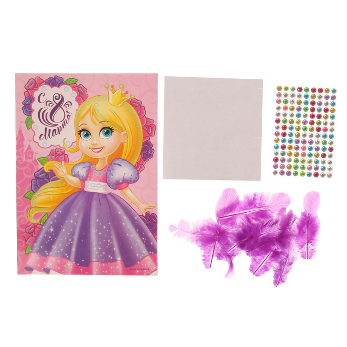 Аппликация перьями и стразами "С 8 марта!" Принцесса