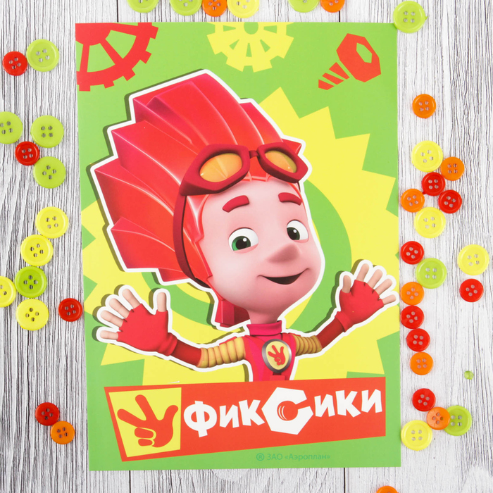 Аппликация пуговками ФИКСИКИ "Файер" + клейкая лента