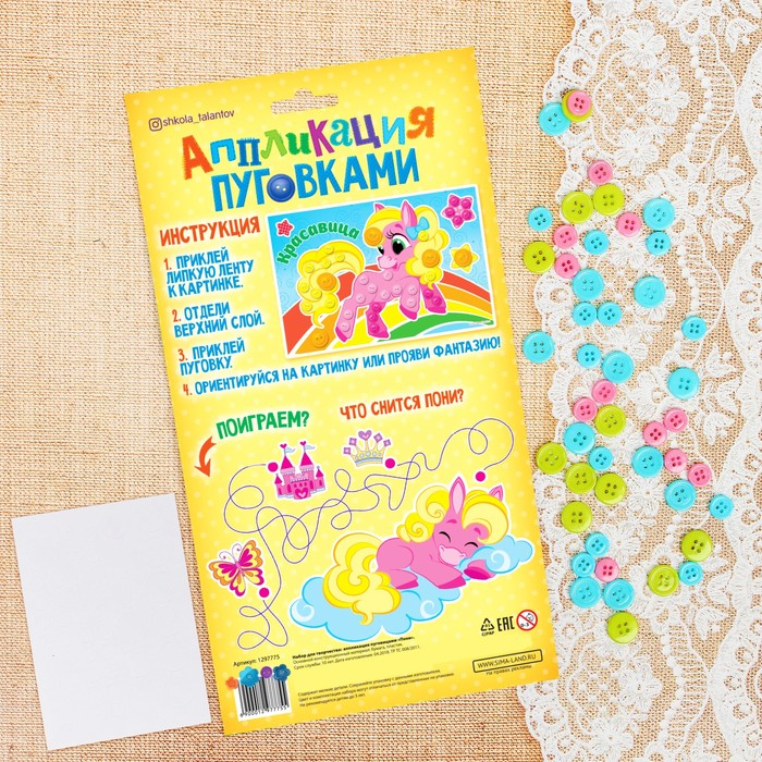 Аппликация пуговками "Пони"+ клейкая лента