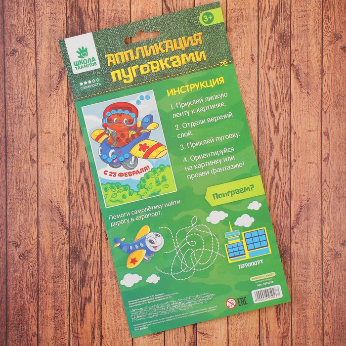 Аппликация пуговками "С 23 Февраля!"
