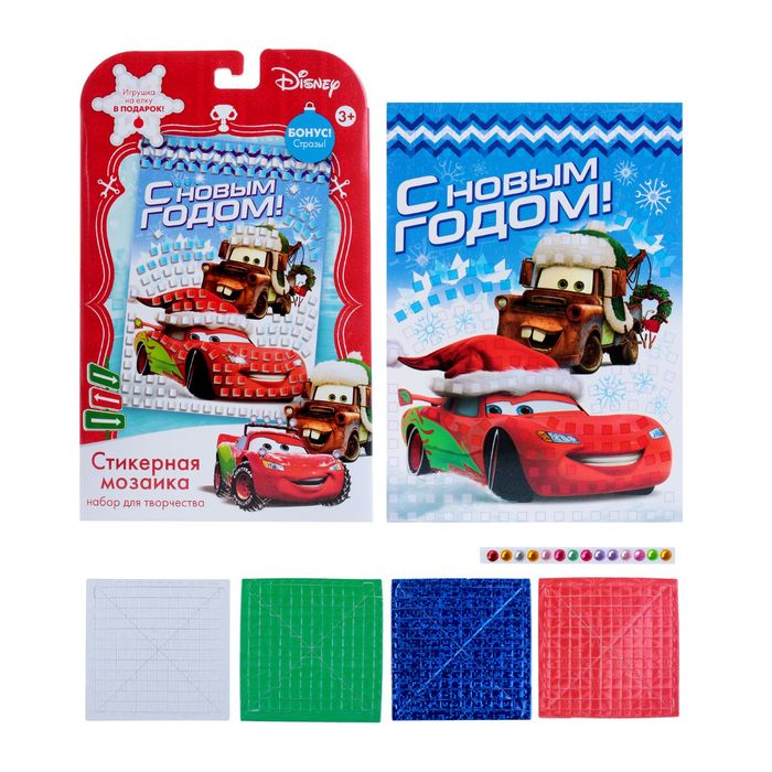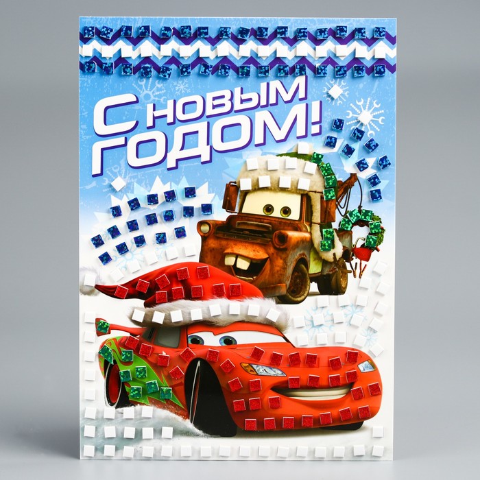 Аппликация "С Новым годом" Тачки , EVA стикеры + стразы