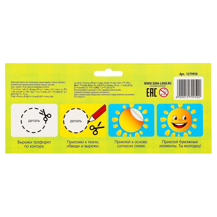 Клей не понадобится! Этот замечательный набор поможет ребёнку создать тканевую картину с помощью одних только ножниц и подарит незабываемые ощущения от рукоделия.