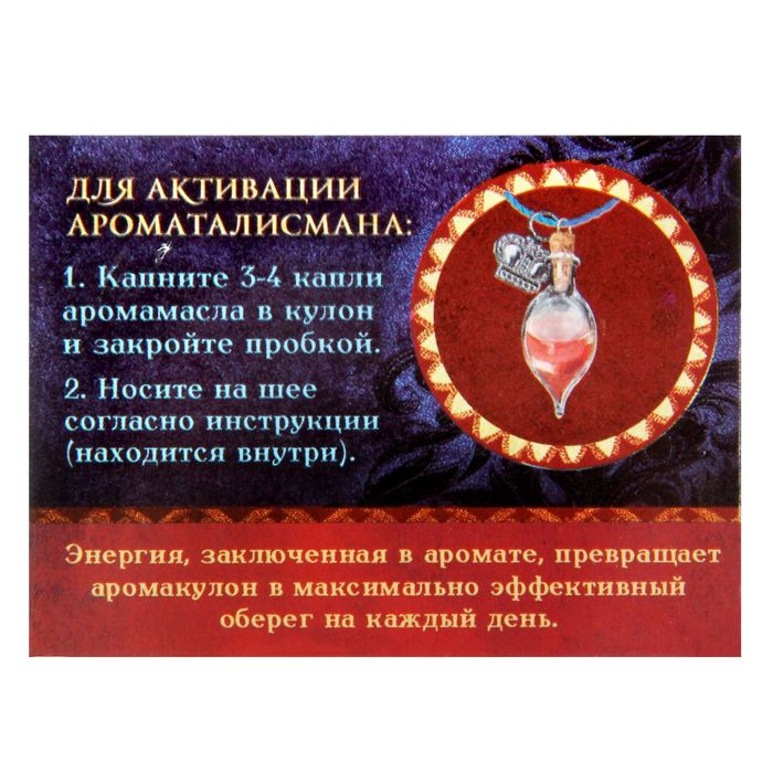 С незапамятных времён ароматические масла используются на Востоке для поддержания здоровья. Они оказывают положительное влияние на эмоциональное состояние человека. Теперь и вы сможете приобщиться к древнему таинству и создать оригинальный талисман.