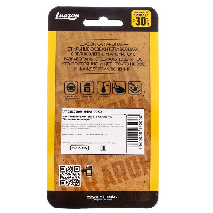 Не секрет, что машина давно уже перестала восприниматься как просто средство передвижения, и водители покупают всё лучшее для своих железных коней. Ароматизатор бумажный Car Aroma "Покоряю просторы", бриз — идеальный выбор, если вы ставите целью и улучшение технических характеристик, и поддержание внешнего вида автомобиля.