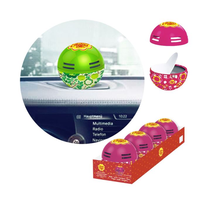 Круглый гелевый ароматизатор в виде огромного леденца Chupa Chups вы легко сможете разместить на приборной панели автомобиля. Он имеет оригинальный дизайн, который украсит салон.