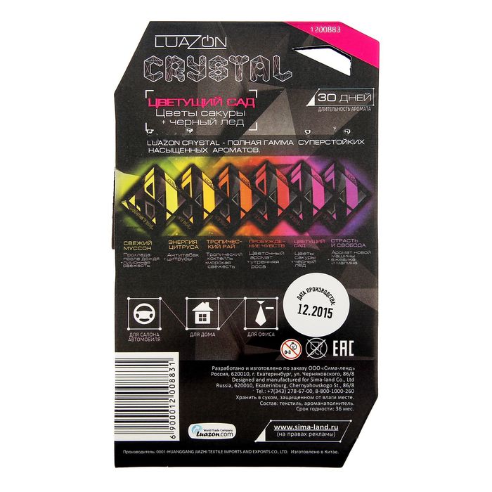 Уникальная серия ароматизаторов понравится всем автолюбителям. Ароматизатор подвесной "Цветущий сад", сакура и лёд обладает длительным сроком службы и приятным запахом, подобранным специально для людей с тягой к прекрасному. Ненавязчивый аромат мягко наполнит салон, поднимет настроение и зарядит позитивом на весь день. Оригинальная конструкция и авторский дизайн с глянцевым тиснением понравятся как водителю, так и пассажирам.