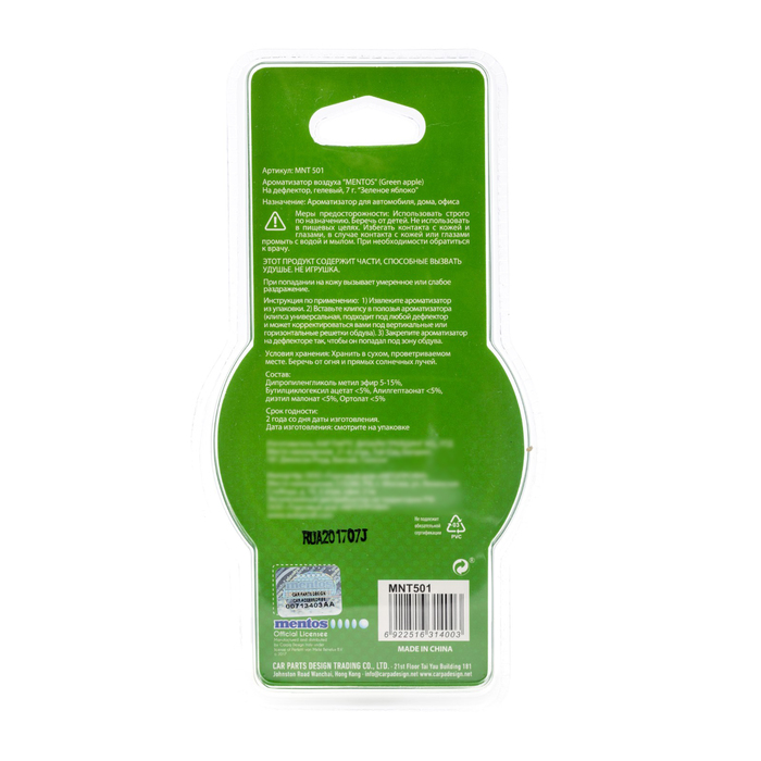 Не секрет, что машина давно уже перестала восприниматься как просто средство передвижения, и водители покупают всё лучшее для своих железных коней. Ароматизатор воздуха MENTOS Зеленое яблоко, на дефлектор, мембранный, 7 г — идеальный выбор, если вы ставите целью и улучшение технических характеристик, и поддержание внешнего вида автомобиля.