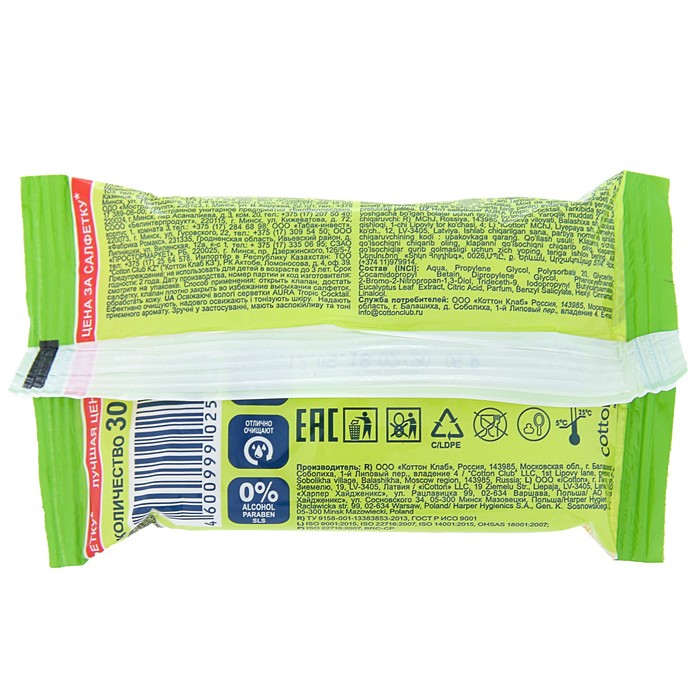 AURA TROPIC COCKTAIL Влажные салфетки освежающие 30шт