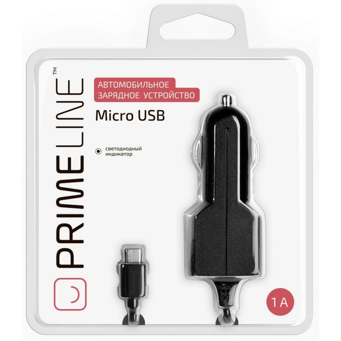 Авто З/У Prime Line (2202) micro USB 1000 mA, черный витой кабель