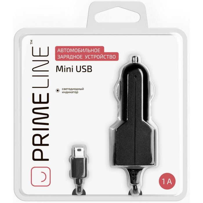 Авто З/У Prime Line (2203) mini USB 1000 mA, черный витой кабель