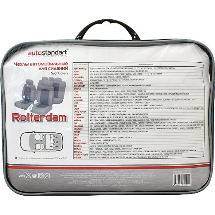 Не секрет, что машина давно уже перестала восприниматься как просто средство передвижения, и водители покупают всё лучшее для своих железных коней. Авточехлы на сиденья, универсальные "Rotterdam", 9 предметов, серый/тёмно-серый — идеальный выбор, если вы ставите целью и улучшение технических характеристик, и поддержание внешнего вида автомобиля.